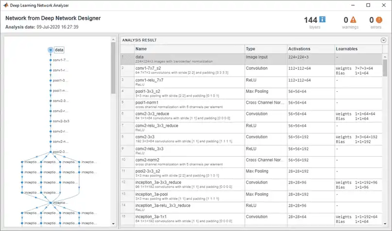 Check your network by clicking Analyze. The network is ready for training if Deep Learning Network Analyzer reports zero errors.