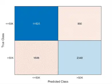 Mdl = fitcnet(tblTrain,"salary","Weights","fnlwgt", ...