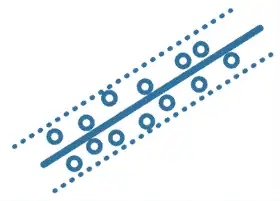 SVM regression algorithms work like SVM classification algorithms but are modified to be able to predict a continuous response. Instead of finding a hyperplane that separates data, SVM regression algorithms find a model that deviates from the measured data by a value no greater than a small amount, with parameter values that are as small as possible (to minimize sensitivity to error). | fitrsvm |