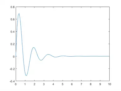 x = linspace(-10,10,200); y = sin (4 * x) ./ exp (x); plot(x,y) xlim ([0 10]) ylim ([- 0.4 0.8])