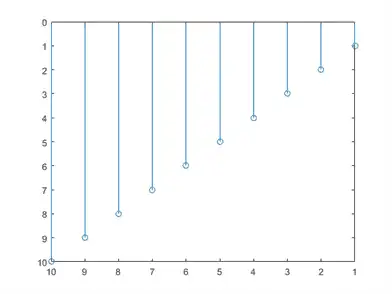 stem(1:10) ax = gca; ax.XDir = 'reverse'; ax.YDir = 'reverse';