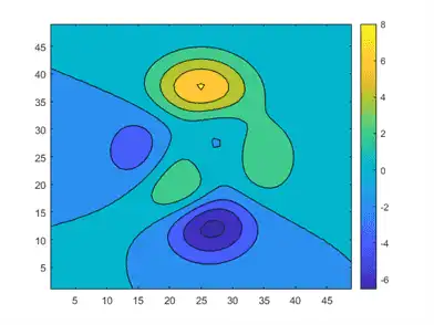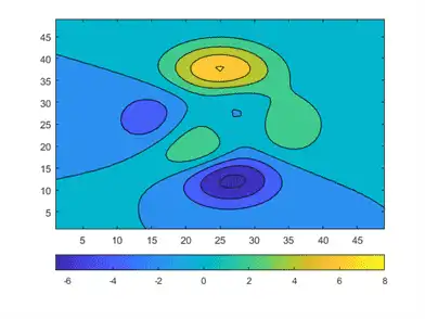 contourf(peaks) c = colorbar;