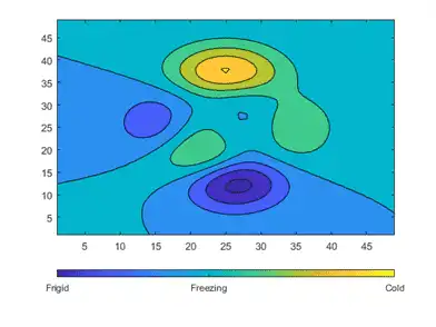 c.TickLabels = {'Frigid','Freezing','Cold'};