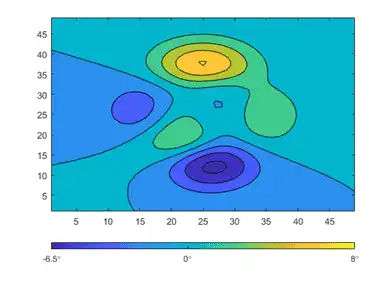 The default location of the colorbar is on the right side of the axes. However, you can move the colorbar to a different location by setting the Location property. In this case, the 'southoutside' option places the colorbar below the axes.