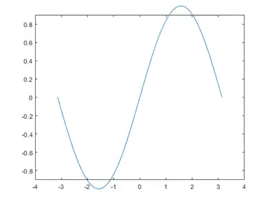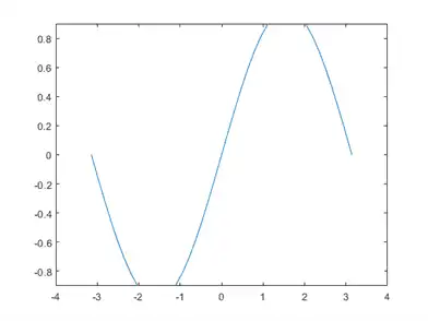 x = -pi:pi/20:pi; y = sin(-pi:pi/20:pi); plot(x,y) ylim([-0.9 0.9])