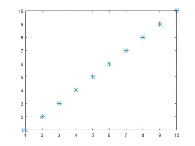 p = plot(1:10,'*'); p.MarkerSize = 10; axis([1 10 1 10])