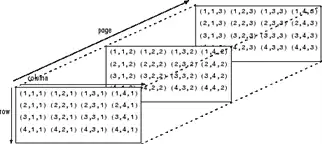 Each element is defined by two subscripts, the row index and the column index. Multidimensional arrays are an extension of 2-D matrices and use additional subscripts for indexing. A 3-D array, for example, uses three subscripts. The first two are just like a matrix, but the third dimension represents pages or sheets of elements.