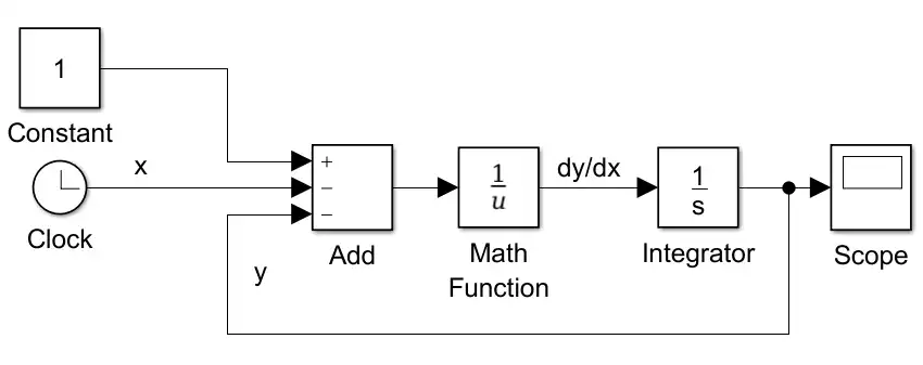 How can we model this equation in simulink dx/dy + x + y = 1 where x is the input and y is the output?