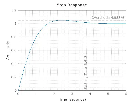yline(1+S.Overshoot/100, '--', sprintf('Overshoot: %.3f %%', S.Overshoot), 'color', '#7F7F7F', 'LabelVerticalAlignment', 'top')