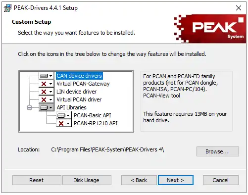 5. Execute PeakOemDrv.exe, and during setup make sure the following options are checked/enabled: