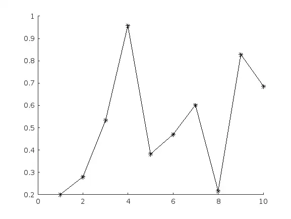 hold on for idx = 1:10 plot(idx, density(idx),"*") drawnow xlim([0.0 10.0]) ylim([0.0 6.1]) hold on plot(1:idx, density(1:idx),"*") drawnow end Unrecognized function or variable 'density'.